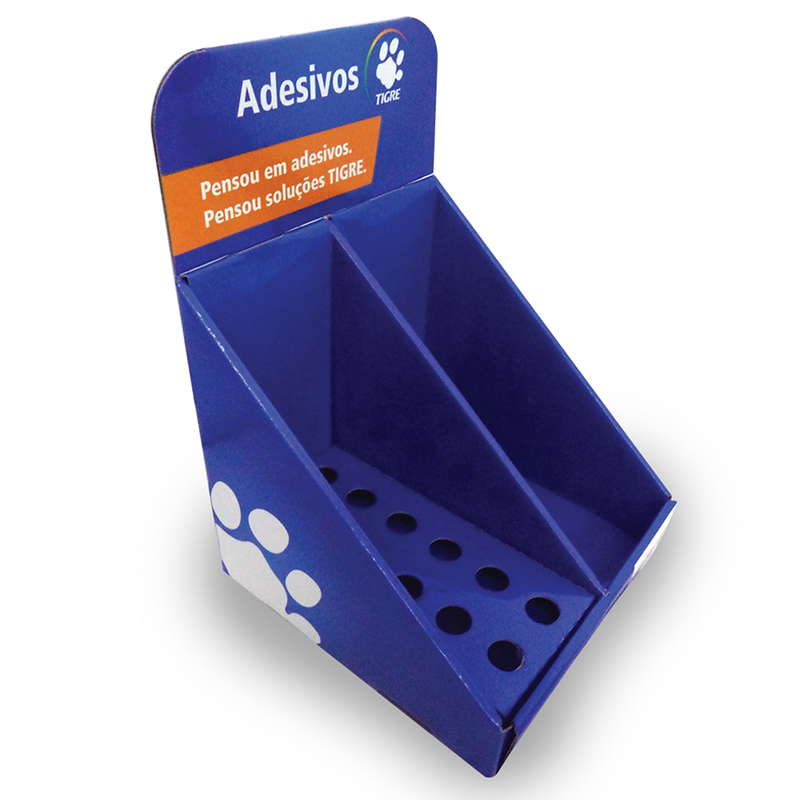 Muito usada para exposição do produto no ponto de vendas. Uma embalagem onde a ideia é que a própria caixa da entrega vire seu expositor. Impressas em papel triplex ou duplex, em sua variedade de gramaturas e podendo haver alguns acabamentos especiais como plastificação, laminação BOPP, verniz base de água ou UV, visor em acetato ou PVC.
